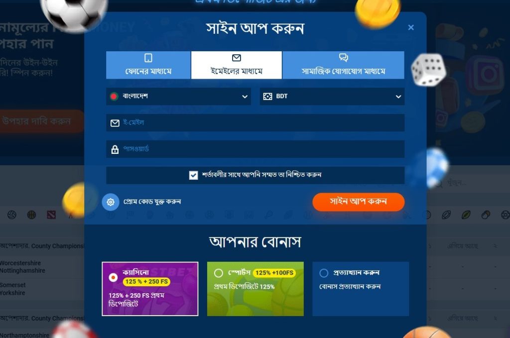 - প্রোমো কোড থাকলে তা ব্যবহার করে ওয়েলকাম বোনাস পাওয়ার সুযোগ নিন।